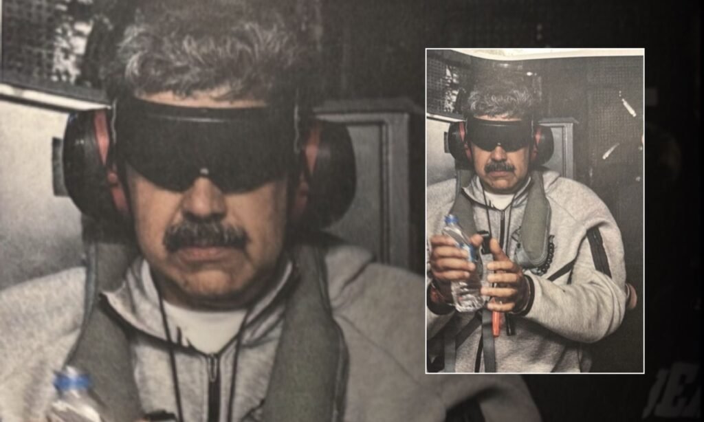 Na imagem compartilhada, Maduro aparece algemado, com os olhos vendados e utilizando abafadores de som, já no interior do navio militar norte-americano USS Iwo Jima. A fotografia também foi repercutida pelo perfil oficial da Casa Branca na rede social X, ampliando a repercussão internacional do episódio.
